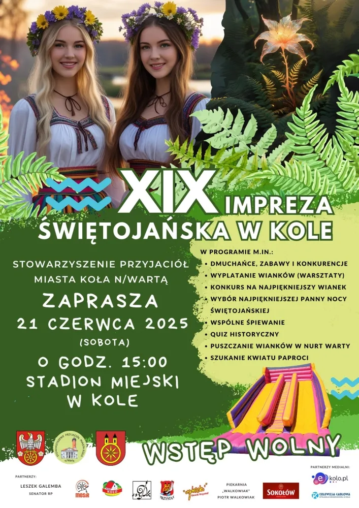 Stowarzyszenie Przyjaciół Miasta Koła n/Wartą zaprasza na XIX Imprezę Świętojańską, która odbędzie się 21 czerwca 2025 roku (sobota) o godzinie 15:00, na Stadionie Miejskim w Kole. Wydarzenie ma na celu promocję lokalnych tradycji oraz integrację mieszkańców.