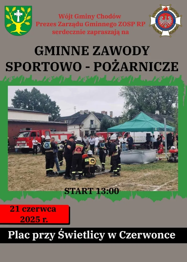 Na wydarzenie zapraszają Wójt Gminy Chodów oraz Prezes Zarządu Gminnego Związku Ochotniczych Straży Pożarnych Rzeczypospolitej Polskiej.
