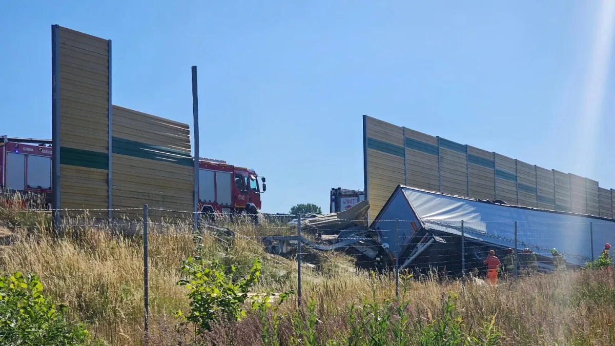 Na pasie awaryjnym znajdował się uszkodzony pojazd oczekujący na pomoc drogową (prawidłowo oznaczony pachołkami ostrzegawczymi), w który uderzyła ciężarówka a następnie rozbiła bariery dźwiękochłonne i spadła do rowu.