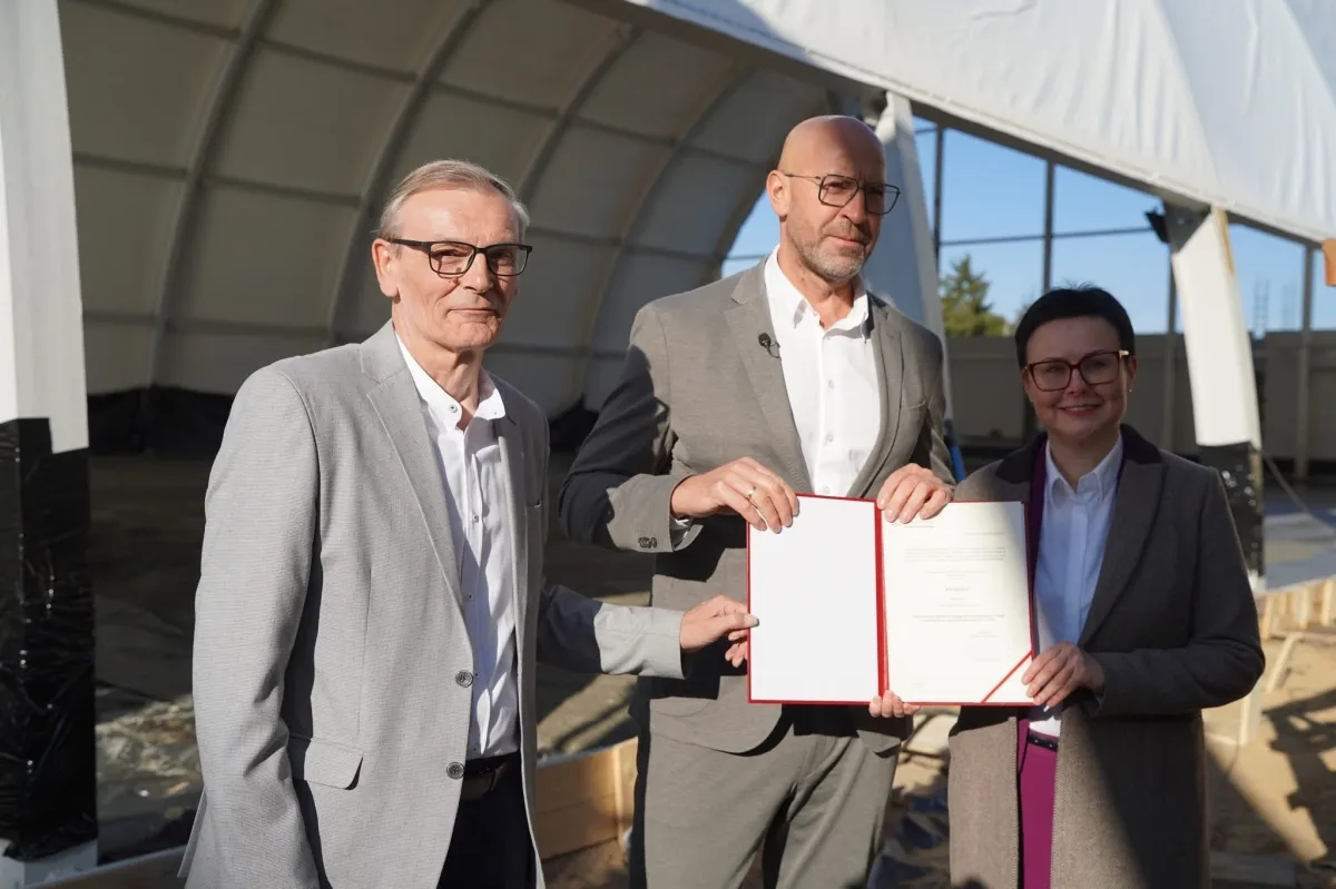 Dofinansowanie zostanie wykorzystane na budowę boiska wielofunkcyjnego z zadaszeniem, które powstaje przy SP nr 2. W spotkaniu wzięli również udział dyrektor szkoły Waldemar Pietrzak oraz pracownicy Urzędu Miejskiego w Kole zaangażowani w realizację projektu.