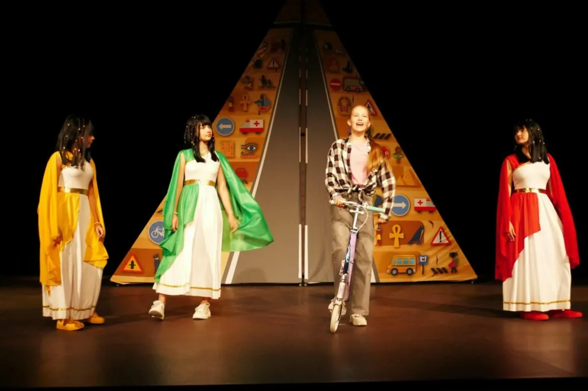 Justyna Gradomska z klasy 8B została jedną z głównych wykonawczyń w musicalu edukacyjnym „Czerwone, zielone i żółte”, realizowanym przez Fundację Barwy Kultury. Przedstawienie skierowane jest do dzieci w wieku przedszkolnym i wczesnoszkolnym. Celem projektu jest kształtowanie bezpiecznych nawyków w ruchu drogowym poprzez muzyczno-teatralną formę artystyczną.