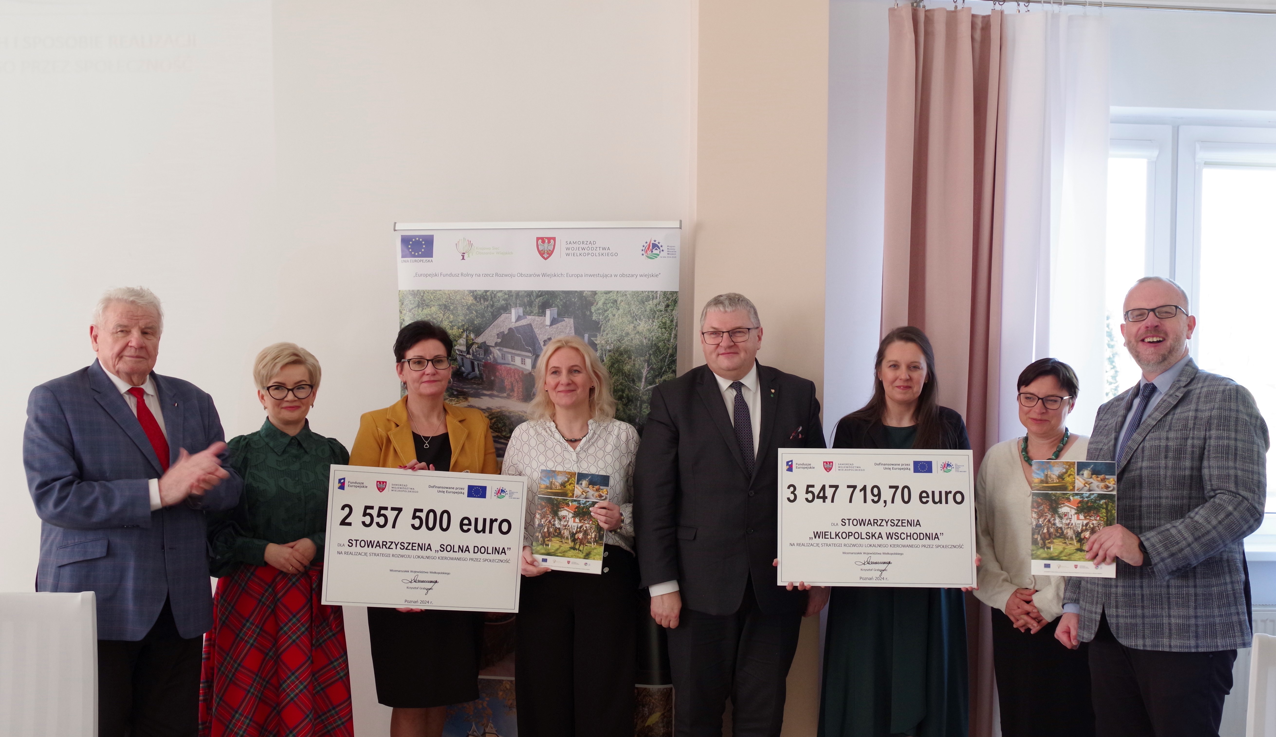 Dzięki podpisanym w styczniu 2024 roku umowom ramowych Stowarzyszenie „Solna Dolina” oraz Stowarzyszenie „Wielkopolska Wschodnia” dysponują łącznie ponad 6 milionami euro do rozdystrybuowania wśród beneficjentów. Środki na ten cel pochodzą z trzech funduszy: rolnego, społecznego oraz rozwoju regionalnego. Fot. A. Kapuściński.