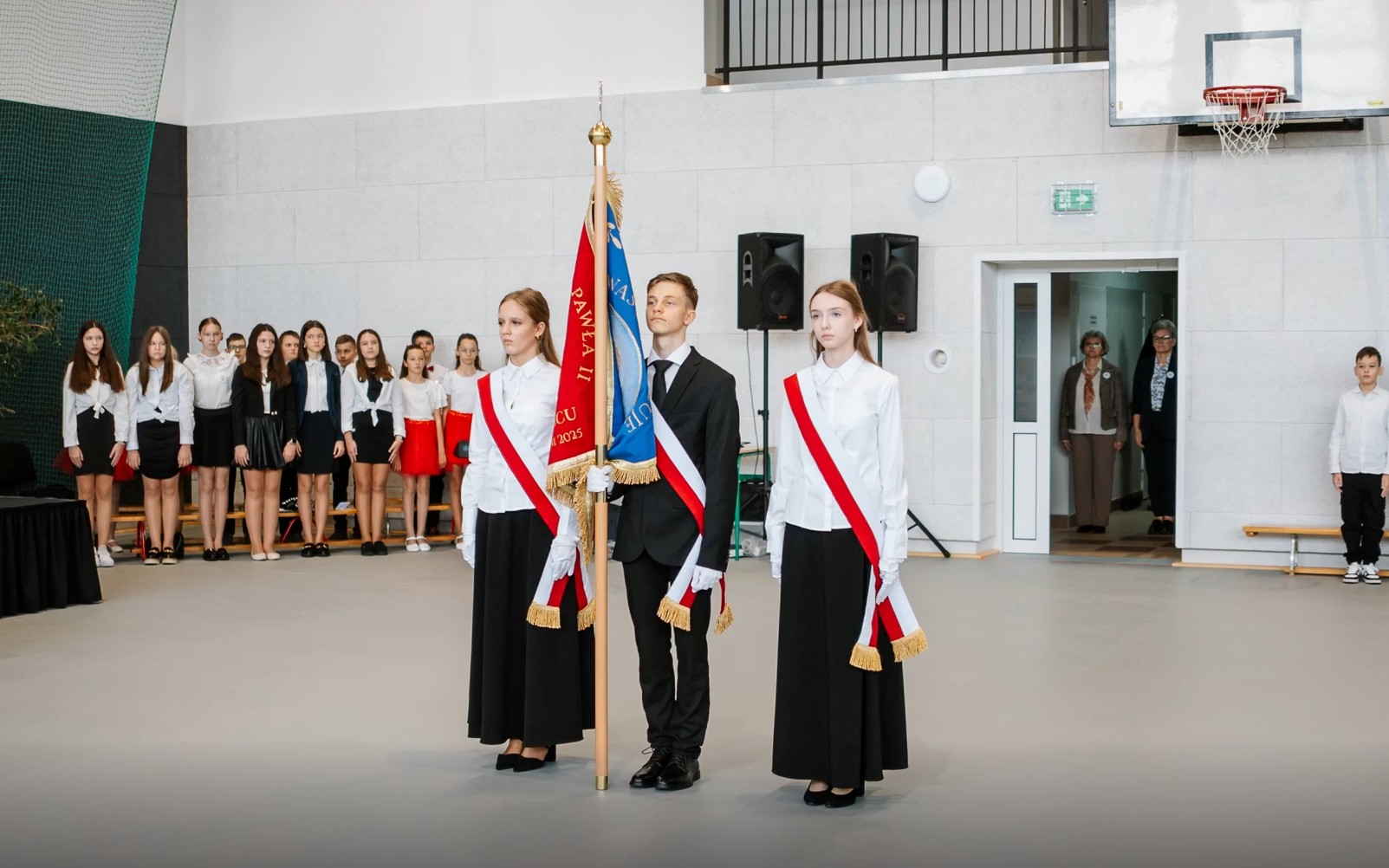 Kulminacyjnym punktem uroczystości było przekazanie i prezentacja sztandaru szkoły, symbolu przynależności i pracy dla ojczyzny. Po przyjęciu od przedstawicieli Rady Rodziców dyrektor szkoły przekazała sztandar uczniom. Następnie nastąpiła prezentacja sztandaru i uroczyste ślubowanie na wartości patrona Jana Pawła II złożone przez przedstawicieli wszystkich organów szkoły: dyrektora, przedstawiciela Rady Pedagogicznej, przewodniczącą Rady Rodziców oraz przedstawicieli Samorządu Uczniowskiego.