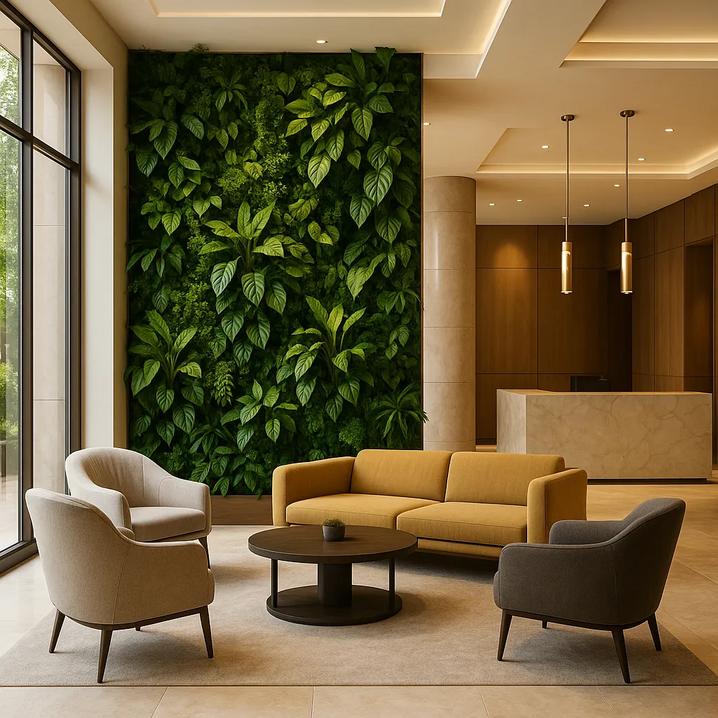 Sztuczne ogrody wertykalne są praktyczną opcją dla lokali, w których warunki są trudne dla roślin. W restauracjach często panuje zmienna wilgotność, w kuchniach unosi się para, a w hotelowych korytarzach światło naturalne jest ograniczone. W takich przestrzeniach syntetyczne rośliny zapewniają pełną kontrolę nad efektem dekoracyjnym bez ryzyka utraty jakości.