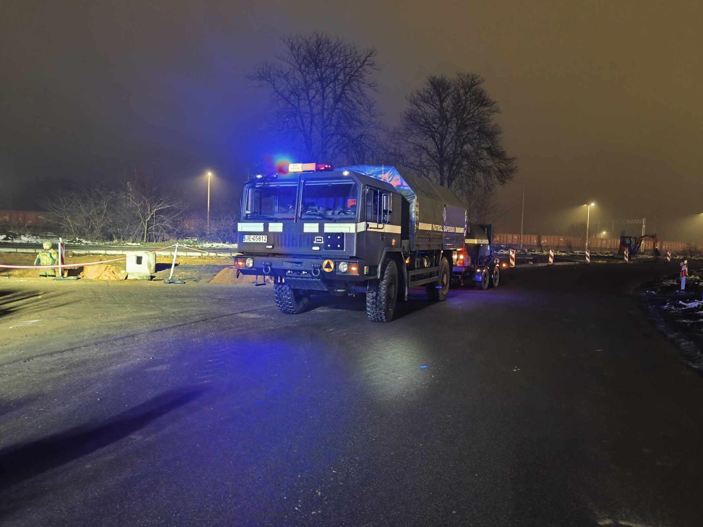 Podczas prac drogowych natrafiono na przedmiot wymagający interwencji specjalistów. Na miejscu pracowały służby a droga była nieprzejezdna.
