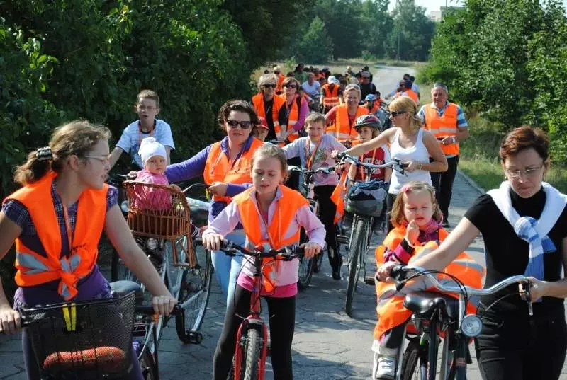Chociaż w nocy temperatura spadła poniżej 5ciu stopni, to dzisiejsze południe było idealne na rodzinną wycieczkę rowerową. Kilkadziesiąt osób razem ze swoimi jednośladami wyruszyło w 30sto kilometrowy rajd.