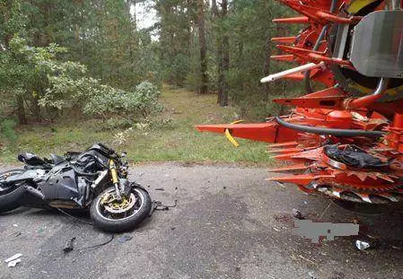 Po dojeździe zastępów PSP i OSP na miejsce zdarzenia i dokonaniu rozpoznania stwierdzono, że na łuku drogi motocykl prowadzony przez mieszkańca gminy Dąbie uderzył w kombajn przeznaczony do ścinania kukurydzy. W wyniku wypadku motocyklista doznał licznych obrażeń ciała.