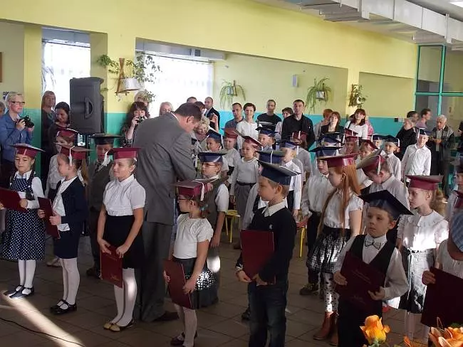 Który sprawił wielką przyjemność im samym, nauczycielom, zaproszonym gościom a przede wszystkim licznie zebranym rodzicom. Zanim dzieci złożyły ślubowanie, wierszem i piosenką udowodniły, jak wiele już wiedzą. Przecież uczęszczają do szkoły prawie dwa miesiące! Dlatego sprawy koleżeństwa, pilności i posłuszeństwa, miłości do Ojczyzny, dbałości o środowisko naturalne oraz świat roślin i zwierząt, nie są im obce. Ślubowali być dobrymi uczniami. Dyrektor pasował każdego z nich, a wychowawcy i goście obdarzyli upominkami. Przed dziećmi teraz wiele lat nauki, życzymy powodzenia już u jej początków.