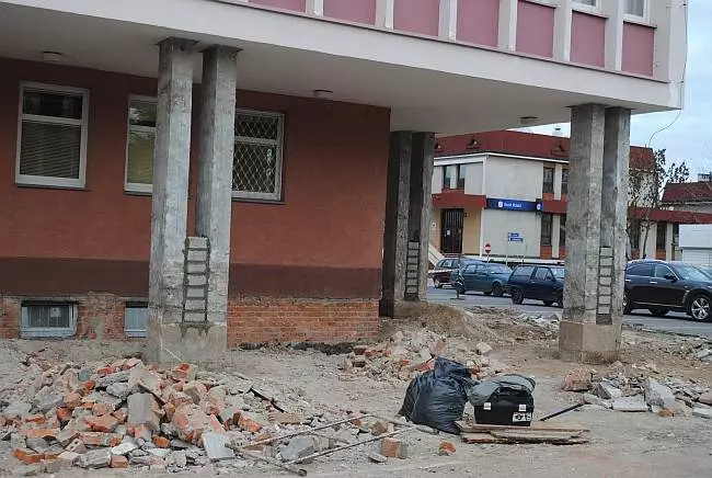 Jak widać jeszcze trochę pracy zostało. Wszyscy, którzy chcą dostać się do wnętrza budynku, muszą udać się do drzwi od strony ulicy Wojciechowskiego.