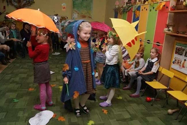 Była i jesienna zaduma, spadające liście i padający deszcz, ale też wiele radości, bo każda pora roku jest na swój sposób piękna. Wykorzystując barwne stroje, rekwizyty i instrumenty muzyczne, dzieci wierszem, piosenką i tańcem przez godzinę zabawiały rodziców w jesiennym repertuarze. Krasnoludki do koncertu przygotowały panie: Elżbieta Tomczyk i Eliza Graczyk. Gościnnie wystąpiły także uczennice Państwowej Szkoły Muzycznej, dwie flecistki i jedna grająca na skrzypcach.
