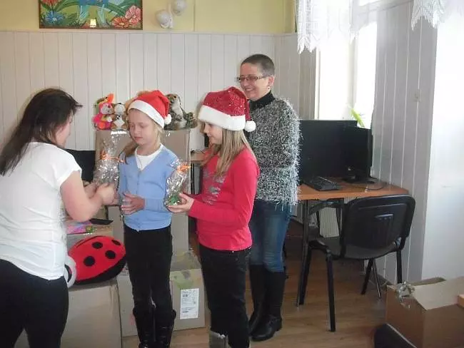 W rolę Mikołaja wcieliła się SP Nr 1 w Kole. Pani Katarzyna Prądzyńska, inicjatorka i od lat główny organizator zbiórki ,wraz z Zuzią i Martynką w dn. O4.12.2013 r. przekazała zebrane zabawki dzieciom z SOSW.