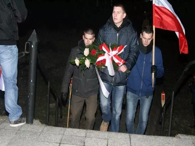 Połowa uczestników marszu niosła flagi w biało – czerwonym kolorze oraz flagi powstańcze. W czasie przemarszu skandowano hasło m.in. „Cześć i chwała bohaterom”, „ „Powstańcy dzięki za wolność”. Po dojściu przed Ratusz do zebranych przemówił przedstawiciel Wielkopolskich Patriotów Patryk Tomczyk który powiedział min. –„ Nie wolno nam zapominać o tych co za nas oddali swe życie. Postaramy się aby następne pokolenia nie zapomniały o tych bohaterach. Polska musi być wolna i nie podległa”. Po tych słowach przybyli odśpiewali Mazurka Dąbrowskiego i przeszli pod pomnik znajdujący się obok Zalewu rzeki Warty i tam poszczególne delegacje złożyły wiązanki kwiatów.