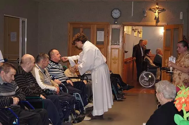 Po Słowie Bożym mieszkańcy, pracownicy przyjęli sakrament namaszczenia chorych. Ci którzy mogli chodzić, pochodzili do kapłana, który namaszczał. Do chorych na wózkach i leżących kapelan podchodził i czynił swą powinność.