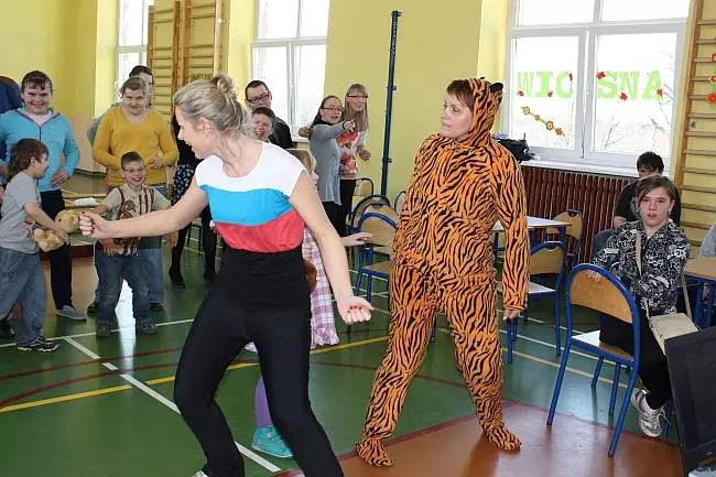 Tanecznie- Pod okiem wprawnej trenerki uczestnicy zabawy w rytmie Dance ćwiczyli swoje „zastałe” po zimie ciała. Ćwiczenia sprawiały wszystkim dużo radości. Na efekty na pewno nie trzeba będzie zbyt długo czekać.