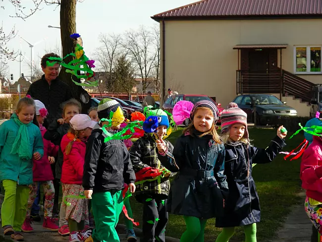 Zapukała do drzwi jak zawsze ... radosna, rozszczebiotana dziecięcymi głosami. było ją słychać i widać , jako że przygotowane na tę szczególną okoliczność stroje przedszkolaków mieniły się soczystymi zieleniami i rozświetlonymi żółciami, które w oczywisty sposób kojarzą sią z wiosną . Wychowankom PM 5 nie zrobił wielkiej różnicy fakt , że zima zdążyła chyłkiem spakować walizki już w czwartek po południu, i że wiosna od teraz przychodzić będzie o jeden dzień wcześniej. Dla nich , a także jak można przypuszczać dla wszystkich innych darzących tę porę roku szczególnym sentymentem najważniejsze było , że wiosna wreszcie jest.