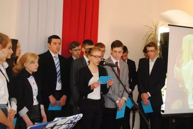 Uczniowie klas gimnazjalnych po pierwszym dniu testów przybyli na obrady sesji rady miasta, aby zaprezentować część artystyczną poświęconą honorowemu mieszkańcowi Koła, Papieżowi Janowi Pawłowi II.