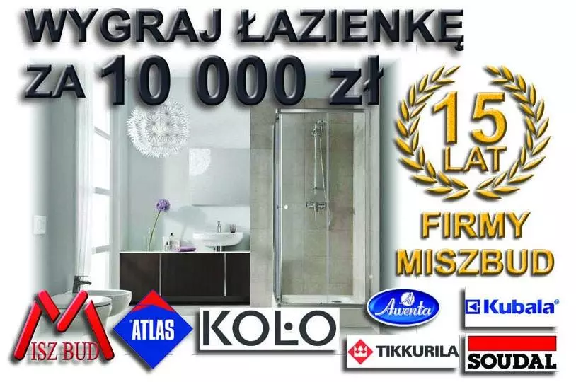 Posiadasz starą zniszczoną, niefunkcjonalną łazienkę, która wymaga remontu lub nie wykończyłeś jeszcze nowej? Weź udział w konkursie organizowanym z okazji 15 urodzin P.P.H.U. MISZBUD i Wygraj Łazienkę za 10 000 zł.