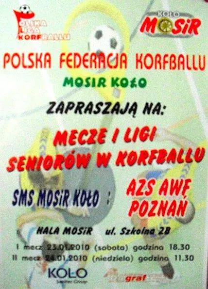 11.30 – MECZ I LIGI KORFBALLU SMS MOSIR KOŁO : AZS AWF POZNAŃ (HALA GŁÓWNA)