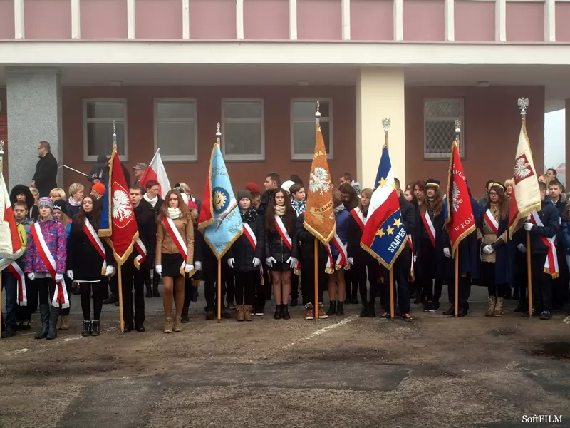 Przed budynkiem Starostwa Powiatowego w Kole, zebrały się poczty sztandarowe, władze samorządowe powiatu i miasta, organizacje polityczne, kombatanci, Sybiracy, młodzież szkolna i mieszkańcy miasta.