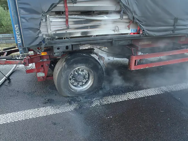 Prawdopodobną przyczyną powstania pożaru było zatarcie się łożyska w Kole przyczepy samochodu ciężarowego.