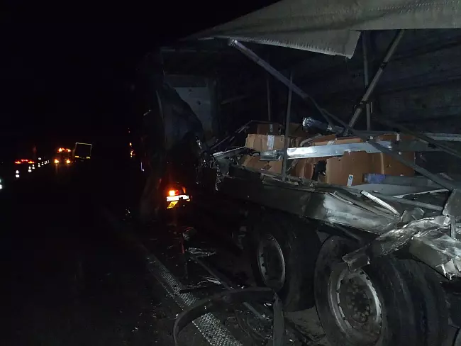 Po przybyciu na miejsce zdarzenia ratownicy zabezpieczyli teren prowadzonych działań. Na miejscu ustalono, że w kolizji drogowej uczestniczyły dwa samochody ciężarowe z naczepami. Na skutek zdarzenia w jednym z pojazdów doszło do rozszczelnienia zbiornika z paliwem. Działania ratownicze polegały na uszczelnieniu zbiornika drewnianym klinem oraz zabezpieczeniu plamy rozlanej na pasie awaryjnym autostrady.