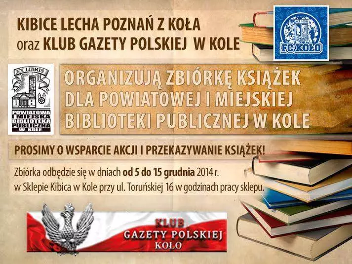 Wraz z kolskim Klubem Gazety Polskiej kolscy Kibice Lecha Poznań zorganizowali zbiórkę książek dla Powiatowej i Miejskiej Biblioteki Publicznej w Kole.