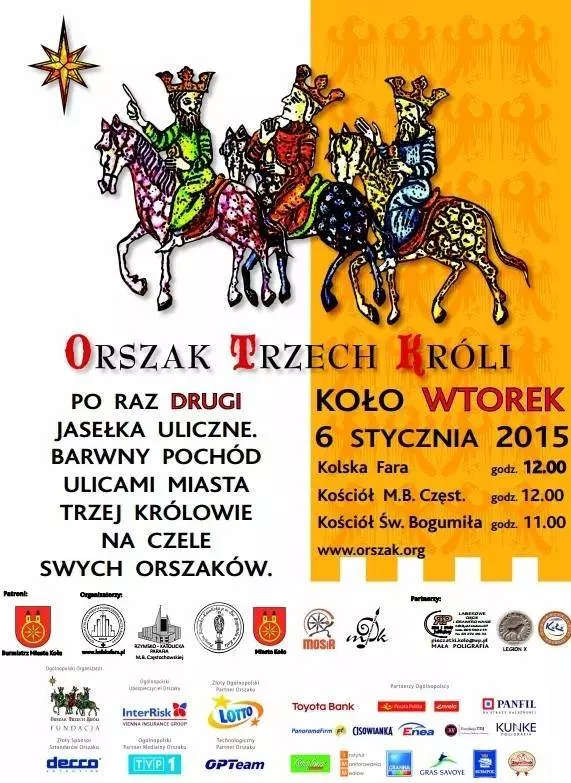 W święto Objawienia Pańskiego – tj. w najbliższy wtorek (6 stycznia) – ulicami Koła po raz drugi przejdzie Orszak Trzech Króli. W tym roku wydarzenie rozpocznie się w trzech miejscach jednocześnie – dlatego organizatorzy liczą na równie wysoką frekwencję jak przed rokiem.