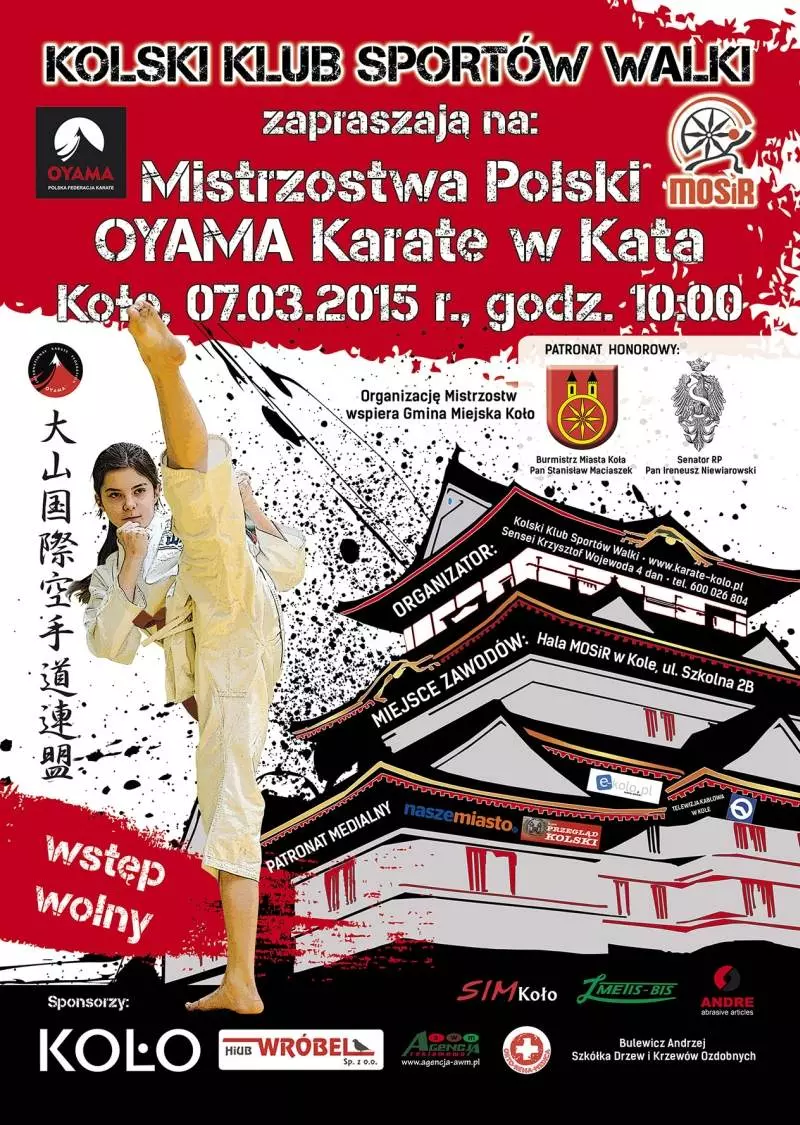 W dniu 7 marca 2015 roku, hala MOSiR w Kole, stanie się areną zmagań najlepszych zawodników Oyama Karate w konkurencji kata z całej Polski. Zapraszamy wszystkich chętnych na mistrzowski pokaz walki.