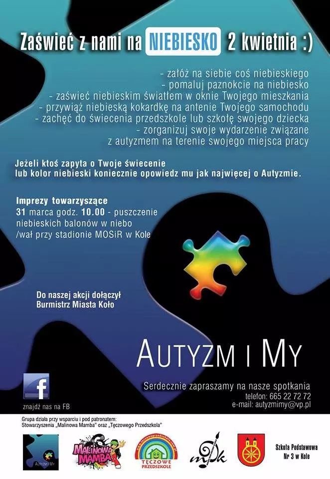 2 kwietnia obchodzony jest Światowy Dzień Wiedzy na Temat Autyzmu. Dzień ten został ustanowiony przez Zgromadzenie Ogólne ONZ w 2008r. Uznało ono autyzm za jeden z najpoważniejszych problemów zdrowotnych świata - obok raka, cukrzycy czy AIDS. Autyzm w chwili obecnej jest najczęściej występującym zaburzeniem rozwojowym, a dzieci nim dotkniętych przybywa w zastraszającym tempie.