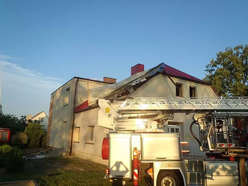 - Stanisławów – częściowe zerwanie dachy facjaty budynku mieszkalnego.