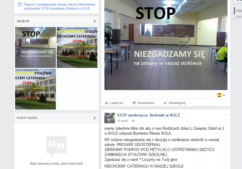 Na facebooku powstała strona, która ma zamiar integrować przeciwników likwidacji stołówki działającej przy Zespole Szkół nr 2 w Kole. Na stronie czytamy: \"MY rodzice nie zgadzamy się z decyzją o zamknięciu stołówki w naszej szkole .PROSIMY UDOSTĘPNIAJ ZBIERAMY PODPISY POD PETYCJĄ O WSTRZYMANIU DECYZJI ZAMKNIĘCIA STOŁÓWKI SZKOLNEJ . \" Czy faktycznie mają rację? Postanowiliśmy przyjrzeć się tej sprawie.