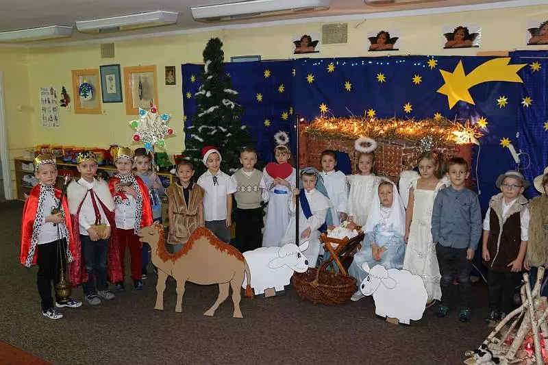 Wszyscy z pewnością czujemy już zbliżające się Święta Bożego Narodzenia. Święta dla nas bardzo wyjątkowe i jakże ważne. To święta, na które czekają nie tylko dzieci, ale i dorośli, gdyż towarzyszy im niepowtarzalna i wyjątkowa atmosfera. Każdy z nas z pewnością nie może doczekać się spotkania z najbliższymi przy wigilijnym stole, dzielenia się opłatkiem przy składaniu życzeń płynących prosto z naszych serc, śpiewania kolęd przy pięknych choinkach, bijących ciepłym i przytulnym światłem. Oczekiwanie na nadejście tych magicznych świąt stwarza okazję do wspólnego spotkania i wspólnego kolędowania w przedszkolu dzieci, nauczycieli i rodziców nim na niebie \"zabłyśnie pierwsza gwiazdka\".