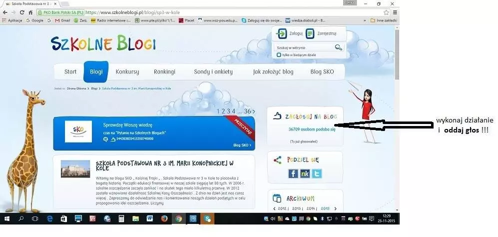 Kolejny raz Szkoła Podstawowa nr 3 w Kole została dostrzeżona przez organizatorów ogólnopolskiego konkursu na najlepszy blog opowiadającej o działalności SKO.