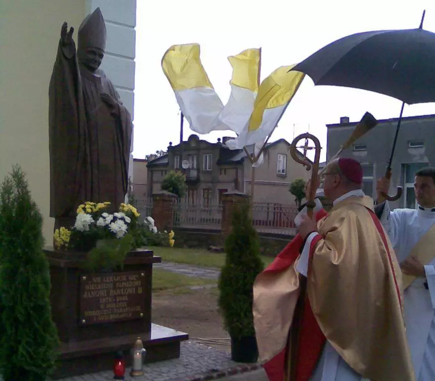 podziękowaniu za pomnik papieża Jana Pawła II ,której przewodniczył biskup Wiesław Mering. Przewodniczący Komitetu Budowy Jana Pawła II Marek Kompanowski powitał biskupa i wszystkich zgromadzony, następnie przemówił proboszcz Maciej Dyoniziak.
