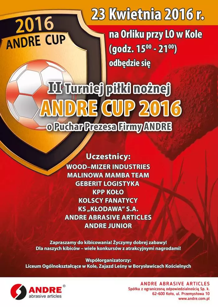 W sobotę 23 kwietnia na boisku orlik przy Liceum Ogólnokształcącym w Kole przy ul. Bliznej odbędzie się II Turniej Piłki Nożnej "ANDRE CUP 2016" o Puchar Prezesa firmy ANDRE.