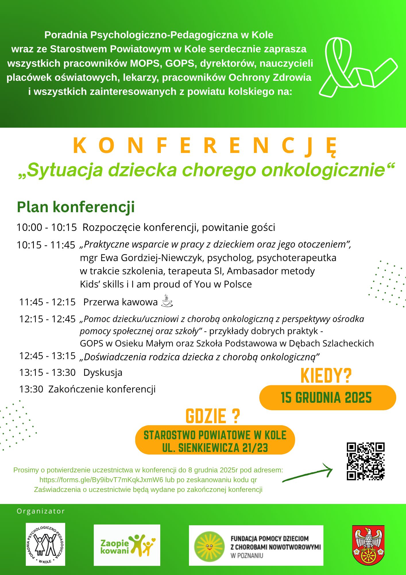 Konferencja dotycząca sytuacji dziecka chorego onkologicznie rozpocznie się o godzinie 10:00. W programie przewidziano wykłady i dyskusje na temat wsparcia dzieci i rodzin w kontekście choroby nowotworowej. Spotkanie rozpocznie się powitaniem gości, po którym odbędzie się wystąpienie na temat praktycznego wsparcia w pracy z dzieckiem. Po przerwie kawowej, uczestnicy będą mieli okazję wysłuchać przykładów dobrych praktyk z ośrodków pomocy społecznej oraz dyskusji na temat doświadczeń rodziców. Konferencja zakończy się o 13:30.